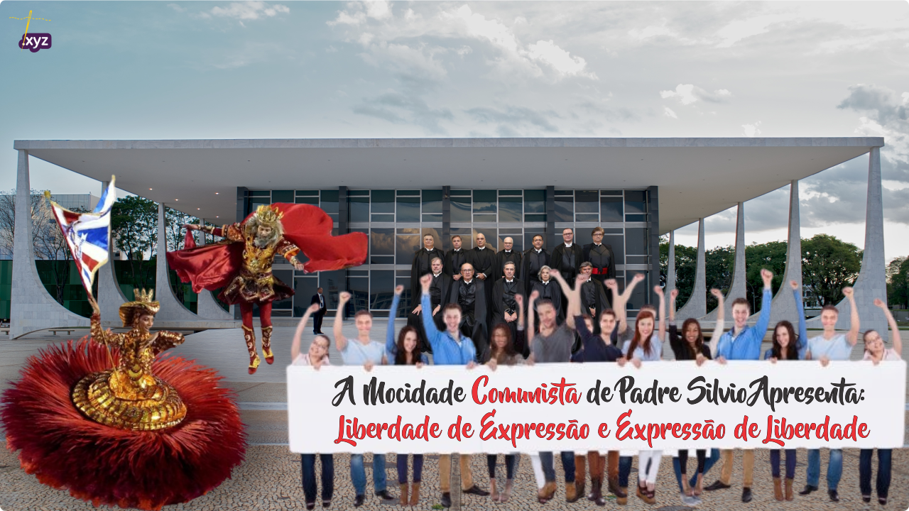 “Liberdade de Expressão e Expressão de Liberdade” então agora me parece até um mote idiota e piegas, e até me faz pensar numa faixa trazida à frente de uma Escola de Samba onde está escrito: “A Mocidade Comunista de Padre Sílvio Apresenta: Liberdade de Expressão e Expressão de Liberdade“. Logo atrás, o Mestre Sala e a Porta Bandeira, casal de bandidos egressos de Curitiba, fazem passinhos vergonhosos tendo se achar estrelas, mas o comando do espetáculo, regendo a bateria que dá o ritmo, está um sujeito careca abana os braços, sacode a toga pedindo silêncio. É um desfile caótico, num Carnaval sem Quarta-feira de cinzas, e que dura até emenda até começar o próximo no outro ano.