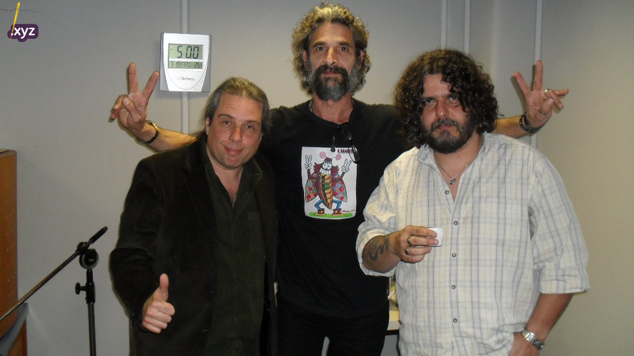Permanecemos ali um pouco e nos despedindo do Paulinho, fomos até a lanchonete – cara por sinal -, onde tomamos um café e ficamos sentados num banco feito de troncos de madeira ao lado de uma escultura que ostenta uma frase de Garcia Lorca. Em pouco tempo, Pedro Nakano, outra figura simpática da produção da rádio nos chamou: era chegada a hora. A ansiedade era grande e ainda no corredor, encontramos Alceu com Luiz Domingues e Xando Zuppo da banda Pedra, com quem partilharíamos a programação.