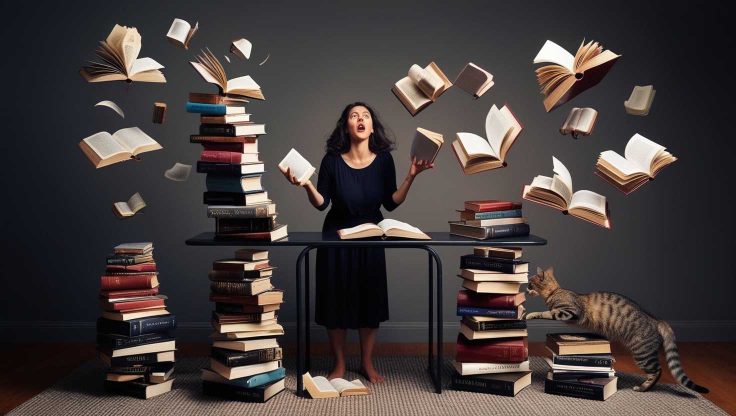 Livros são seres vivos! Livros são seres vivos! Livros são seres vivos! Repito o mantra e a rima falsa “vivos” e “livros”. Rima pobre, decerto. Mas rima.. E penso nisso enquanto lembro, recordo e rio, da amiga poeta que foi atacada por livros rebeldes em sua estante. Um instante! Eram autores rebelados? Escritores descabelados? Papel de segunda? Capas moles, decerto pobres, se rebelando contra a ditadura das capas duras? Nobres e chiques capas duras. A ditadura da capa dura? E aquelas encadernadas em couro e gravadas em ouro, então? Malditas capitalistas! Capas moles contra capas duras e a batalha dos livros, cada um com sua defesa. indefesa, minha amiga poeta Miriam e seu gato sofrem de fato, a consequência desse ato revolucionário de livros em guerra. Maldita ditadura desses livros, e que importa a encadernação, que nos domina por completo. Almas de escritores aprisionados, desalmados até, mas prisioneiros naquelas páginas que antes brancas amarelam e mofam. O papel não é mais o mesmo. A esmo falam de tecnologias novas para o livro. É digital, virtual e o escambau. Merda! Livros são livros, porra! E garanto que minha amiga poeta, da terra da baratas gigantes, soltou enfim um palavrão. Desculpe, querida poeta, mas só sei falar assim. Ai, de mim se me cortam o palavrão! Aliás, por falar em baixo calão, garanto que tinha muitos naqueles livros rebelados que caíram sobre sua cabeça. Mas pouco importa o palavrão, o que importa é a palavra, que não é diminutivo, mas absoluta. Palavrão é só uma palavra. E delas estão cheias, quase em superpopulação nos livros que pedem por ar, pulam da estante, rebeldes inconsoláveis. Decerto que os motivos, mesmo que não vivos, escritores se rebelaram com lugar destinado. E se acaso um dos meus parcos volumes, construído à força de meus braços, foi colocado ao lado desses que fizeram da poesia coisa de vagabundo, consta toda a razão do mundo, para tal rebelião. E não castigue as crianças, querida poeta. E falo dos livros e não da vaidade dos autores, pois são aqueles crianças sensíveis, carentes de atenção e carinho. Seja com capas moles ou duras, não alimentam ditaduras. São apenas livros. Vivos!